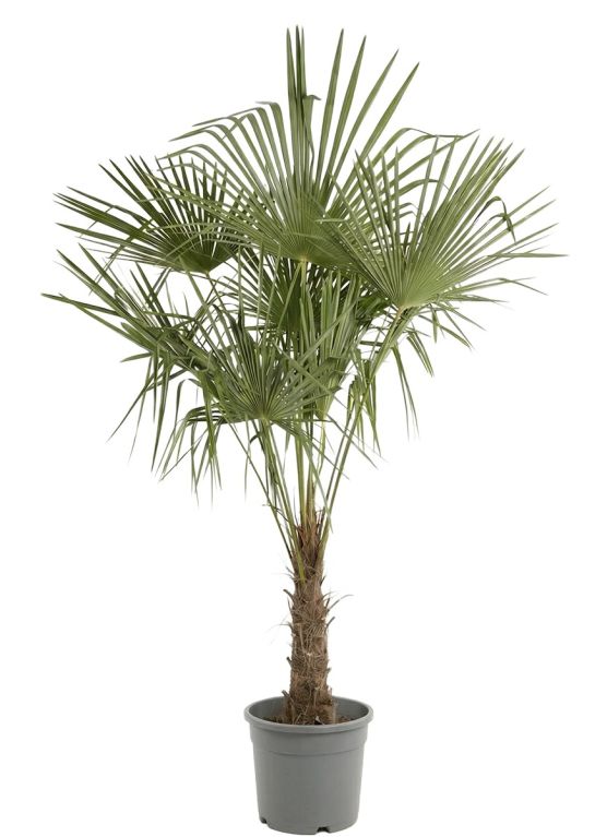 Die Trachycarpus Fortunei, auch Chinesische Hanfpalme genannt, zählt zu den winterhärtesten Palmen für das europäische Klima. Sie besitzt einen markanten, faserigen Stamm von etwa 40–50 cm Höhe und große dunkelgrüne Fächerblätter. Ideal für Garten oder Kübel auf Terrasse und Balkon. Robust und pflegeleicht.